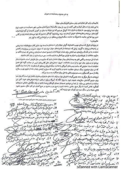 نامه خانوادههای کودکان شهید مدرسه میناب به پاپ لئو چهاردهم
