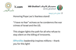 قدردانی قالیباف از ایستادگی شجاعانهٔ پاپ لئو در برابر جنایتهای جنگی آمریکا و رژیم اسراییل