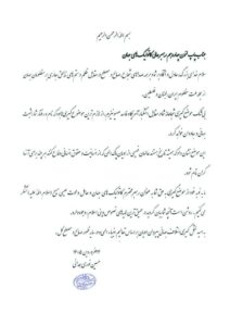 ما به نوبه خود از موضعگیری بهحق شما بهعنوان رهبر محترم کاتولیکهای جهان و حامل دعوت عیسی مسیح (سلام اللّه علیه) تشکر میکنیم. روشن است آنچه شما بیان کردید در عمیقترین لایههای نصوص دینی اسلام، وجود دارد.